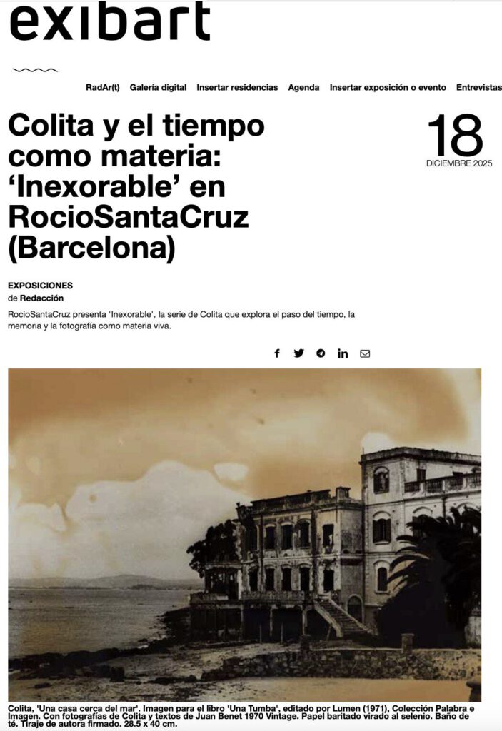 Colita. Inexorable , realitzada en col·laboració amb l’Arxiu Colita, es podrà visitar a la galeria RocíoSantaCruz fins al 15 de març de 2026.